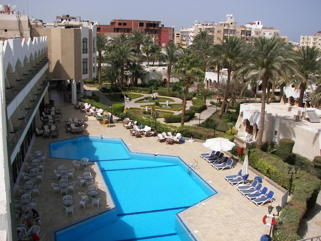 Hurghada lennujaamast ligikaudu 7 km, Hurghada kuurordi keskusest ligikaudu 7 km, rannas.